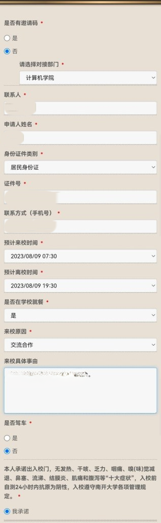 申请界面如下,联系人请填我的名字。如果预留时间不够,提交申请后可以告诉我,我去催相应的领导加紧审批: